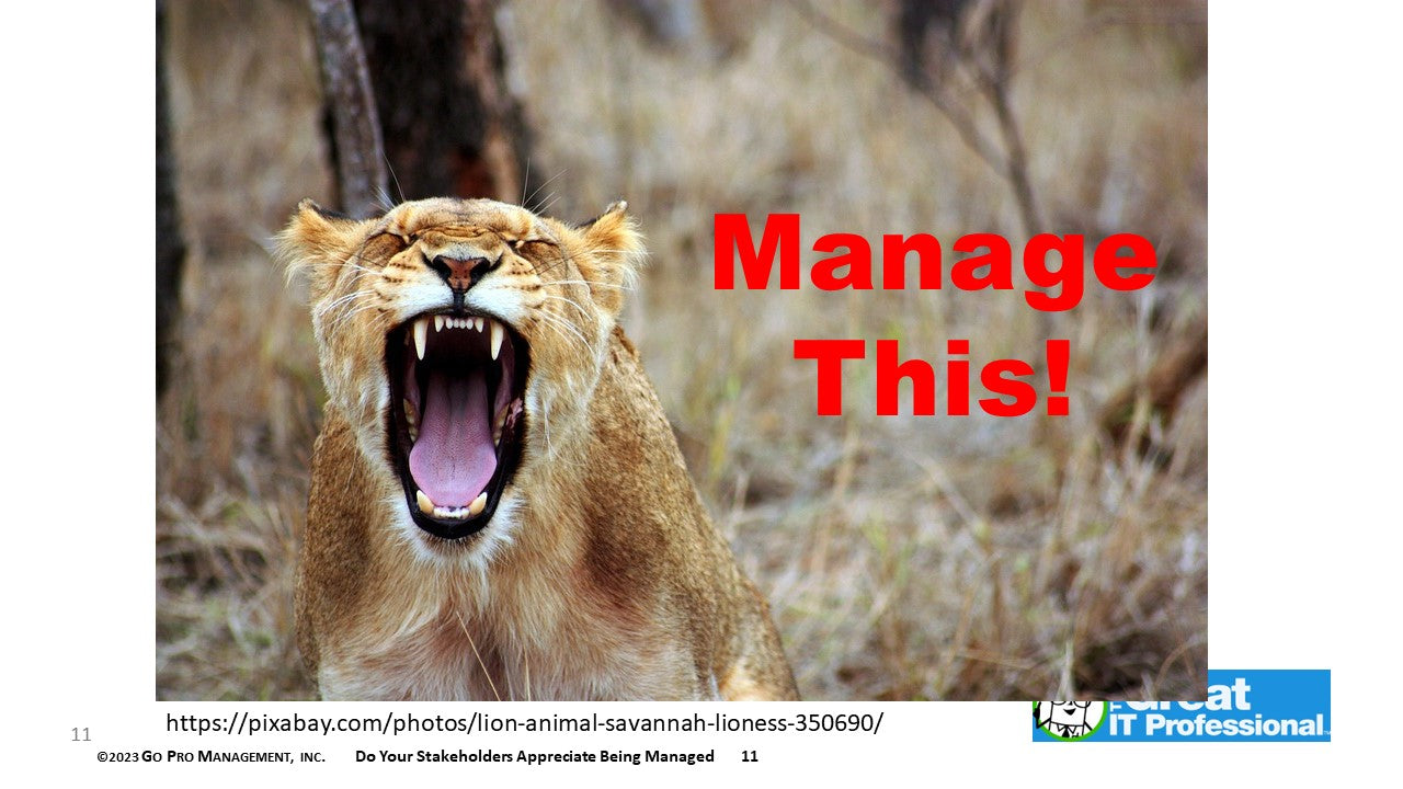 Many projects rely on “stakeholder management” to control communications with stakeholders, including feedback. In this eye-opening interactive session, discover what should be stakeholder management’s objectives and how we might better accomplish them.