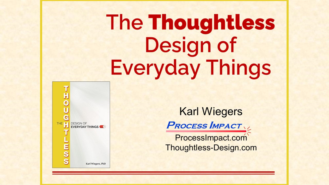 Why do so many software systems and physical products seem to have been designed by someone who has never used a product like that before? This webinar will identify lessons that can help designers, product development managers, and even consumers.