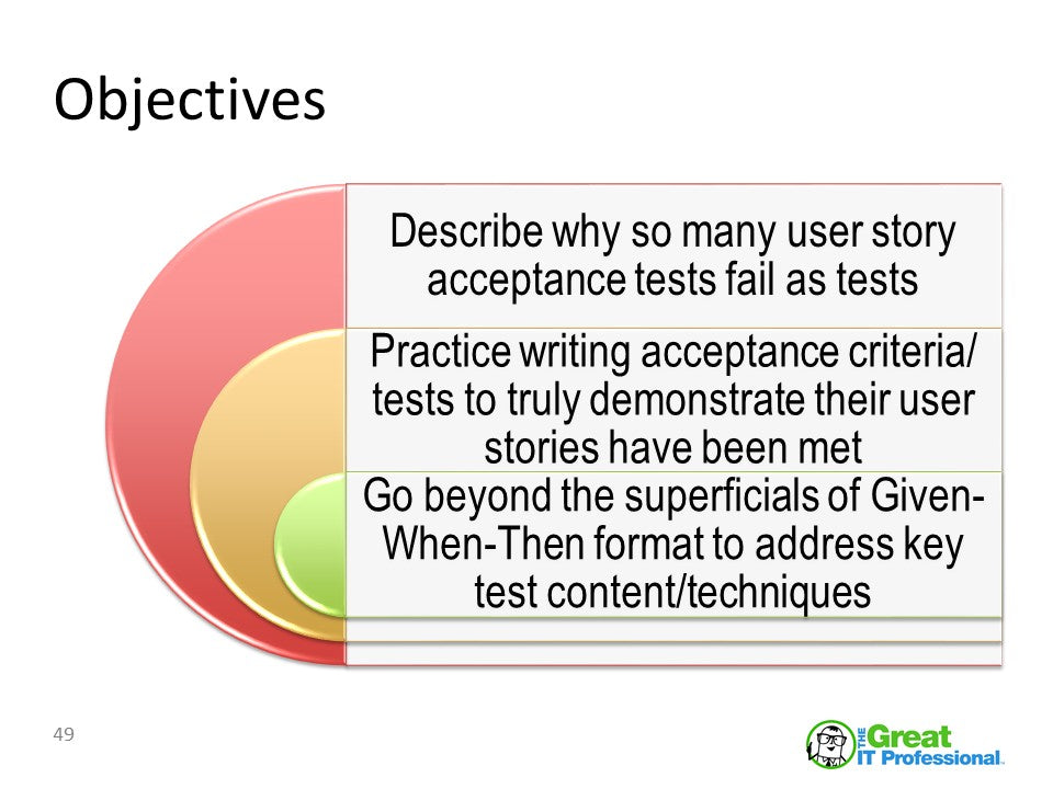 This webinar addresses both format and content for writing good user story acceptance criteria.